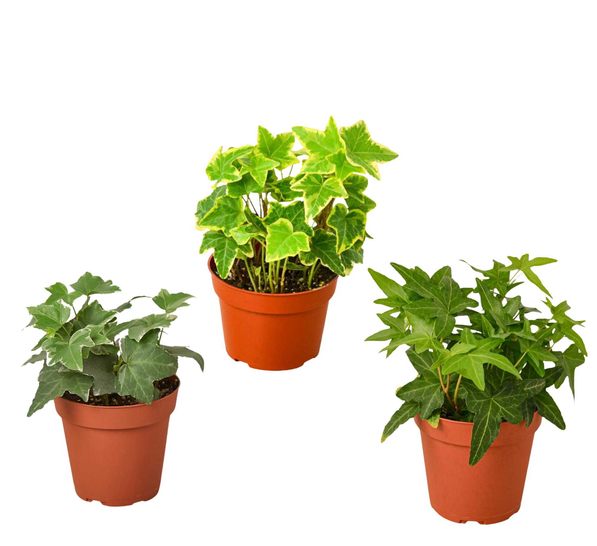 3 different English Ivy plants in 4 inch pots. English Ivy are some of the easiest plants to care for and are a great addition to any home or office.