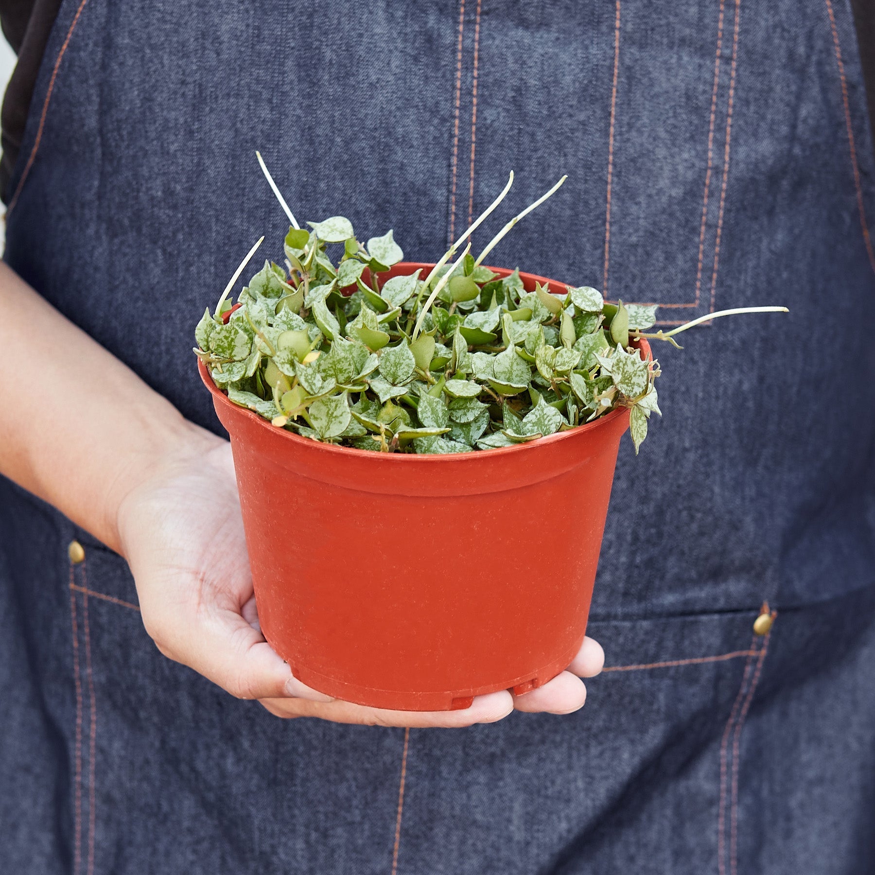 - Description: Hoya curtisii is a miniature trailing hoya. This form of curtisii has small round olive green leaves mottled with grey. The apex is pointed on the thick succulent leaves. This will make a tight mat over the soil surface and then hang down.
