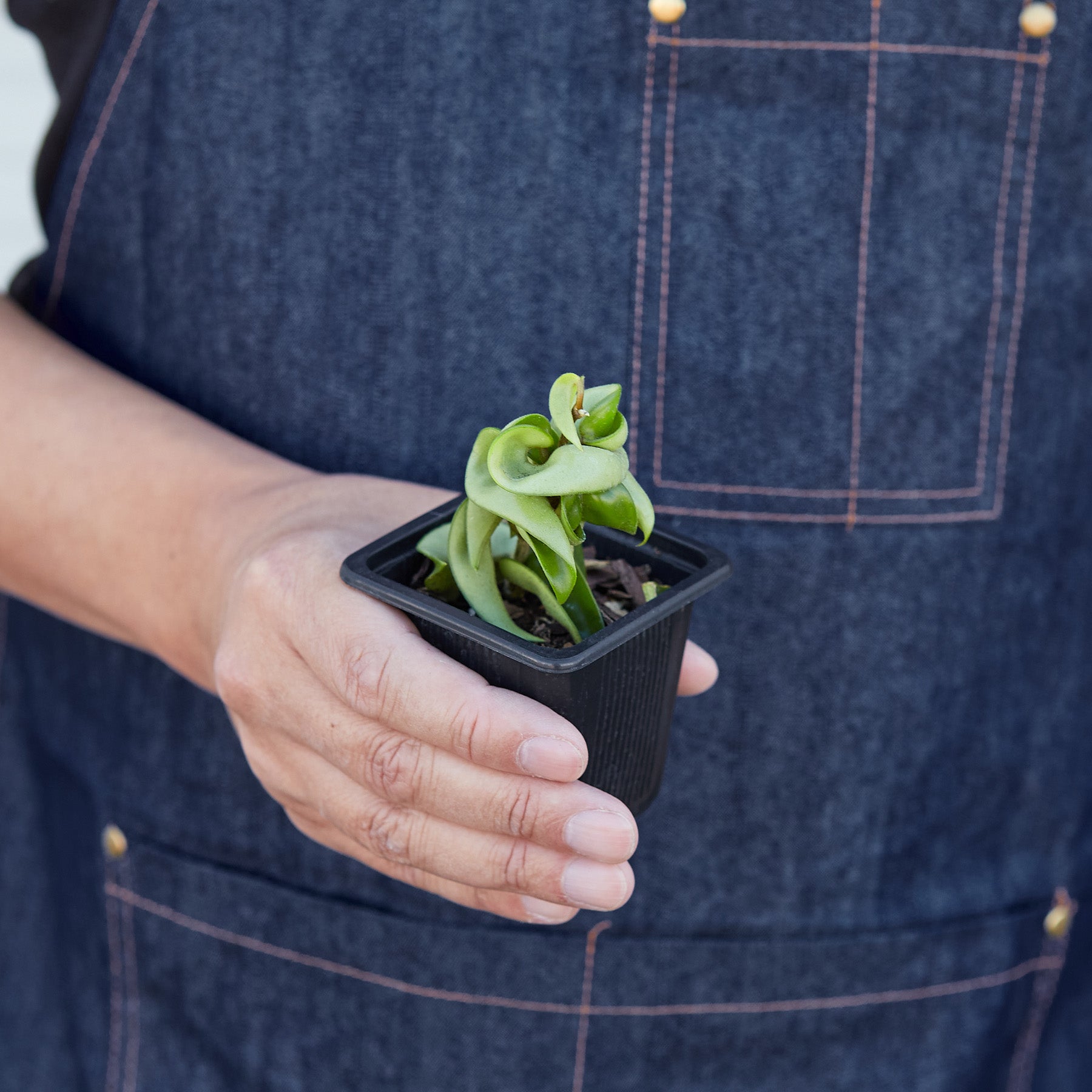 - Description: Unique Hindu rope plants, Hoya carnosa compacta, are draping succulent vines that produce clusters of star-shaped waxy flowers. The thick, twisted, curly, cupped leaves of a Hindu rope plant are why its often called Krinkle Kurl. Hindu rope plants can be found in solid green or with variegated leaves. This type of hoya plant is very easy to care for as long as you have plenty of light and are careful with your water.
