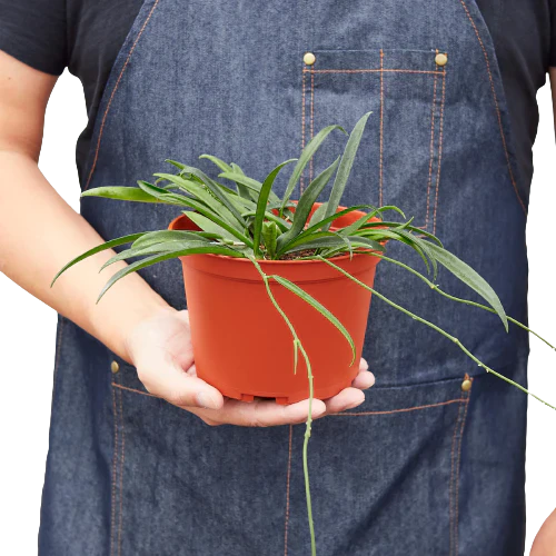 - Description: The String Bean Hoya produces 2-3" wide clusters composed of sweetly fragrant 1/2" wide white waxy star-shaped flowers with a small maroon eye. The long narrow deep green glossy foliage adorns the long trailing stems and give the plant its common due to their resemblance to string beans.