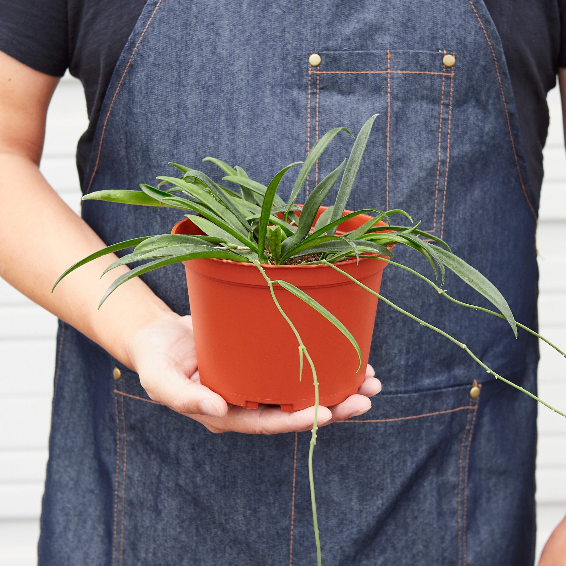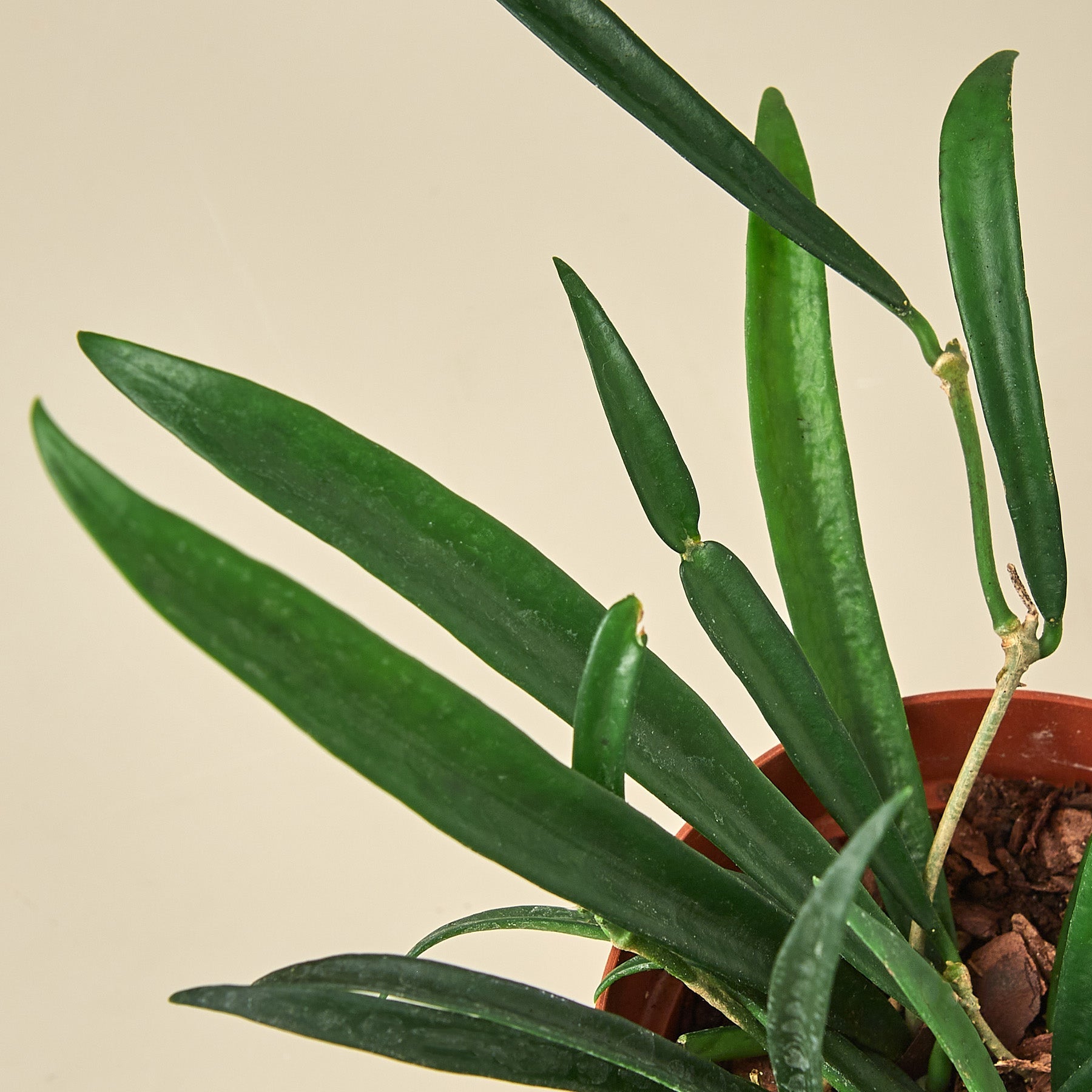 - Description: The String Bean Hoya produces 2-3" wide clusters composed of sweetly fragrant 1/2" wide white waxy star-shaped flowers with a small maroon eye. The long narrow deep green glossy foliage adorns the long trailing stems and give the plant its common due to their resemblance to string beans.