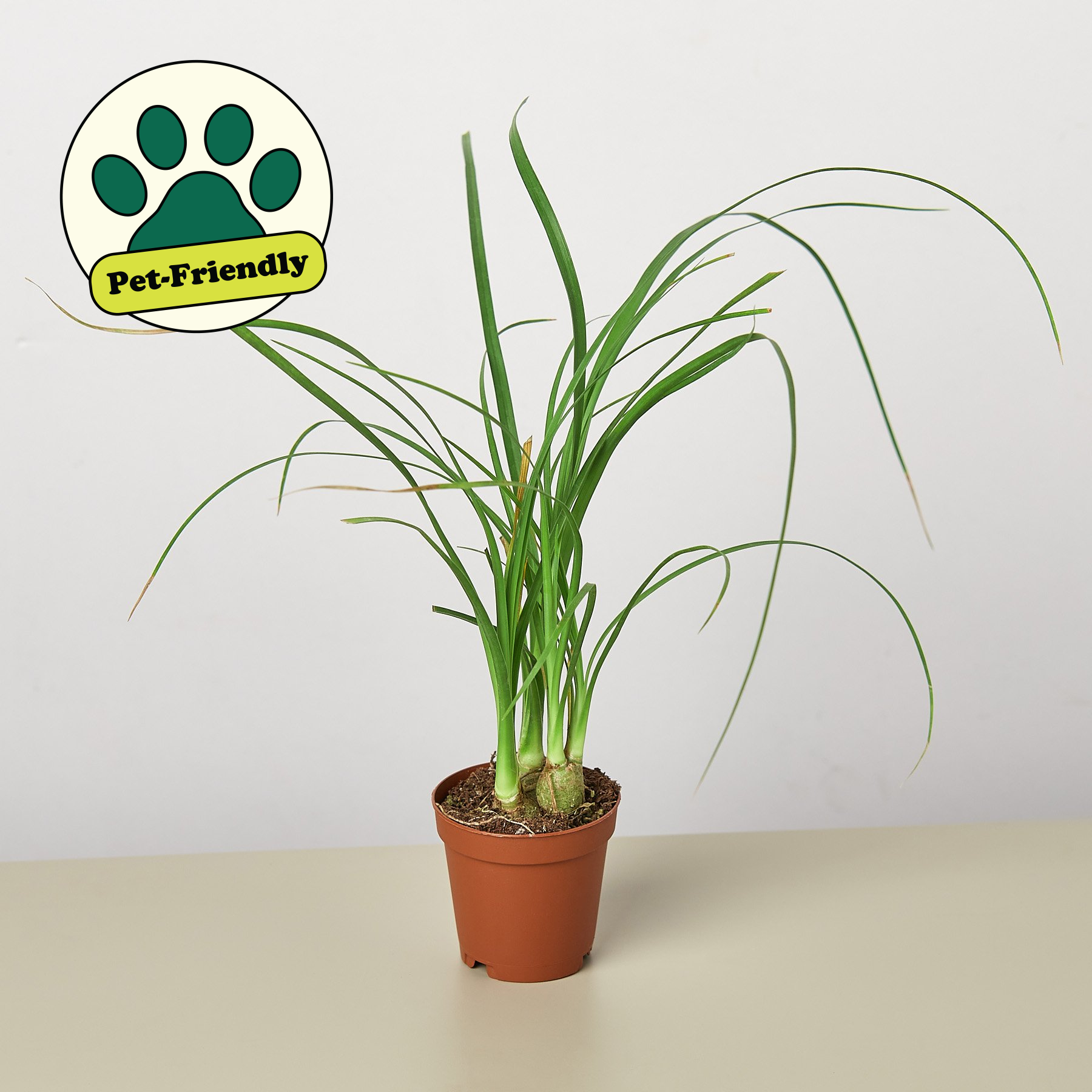 - Description: The ponytail palm is an evergreen perennial native to Eastern Mexico. It has become an ornamental plant due to its ability to thrive indoors and retains water through its swollen trunk. Much like a palm tree this plant can grow to be 30 feet tall in its maturity.