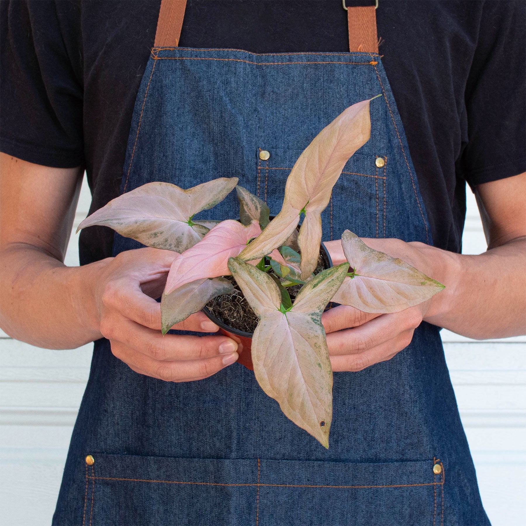 - Description: Syngonium 'Pink Splash' is an adorable and quirky Syngonium with pink splotches against a fresh pink and green leaf. It is normal under certain conditions that the pink variegation takes over the whole leaf. Variegation varies from plant to plant and will grow as it matures.