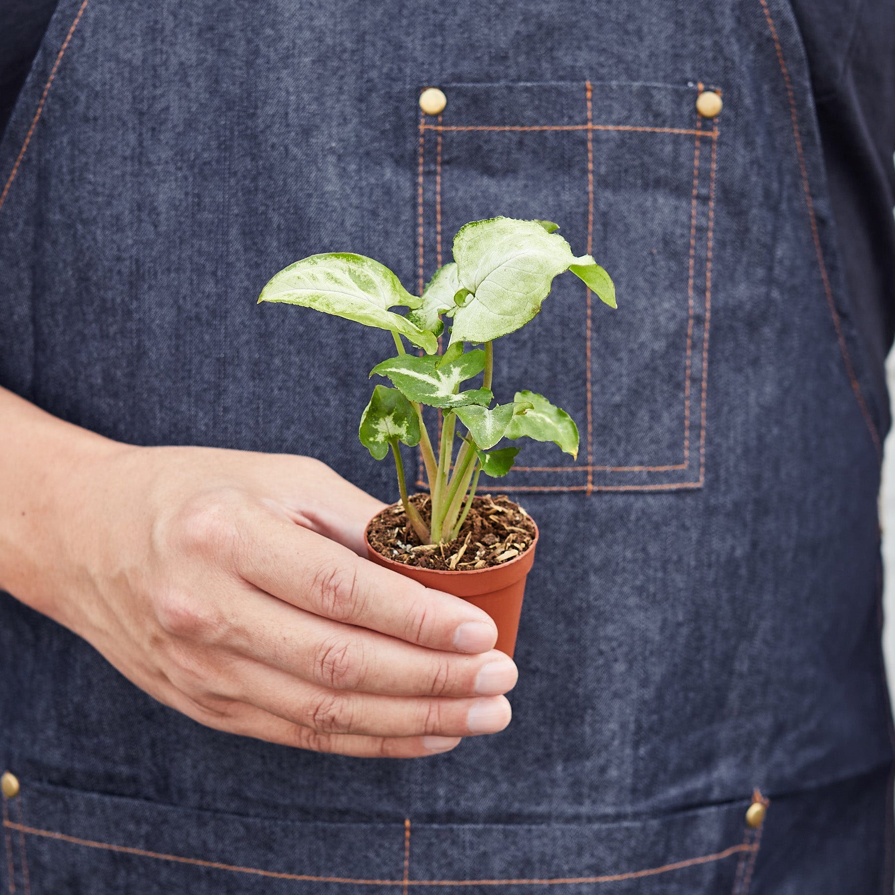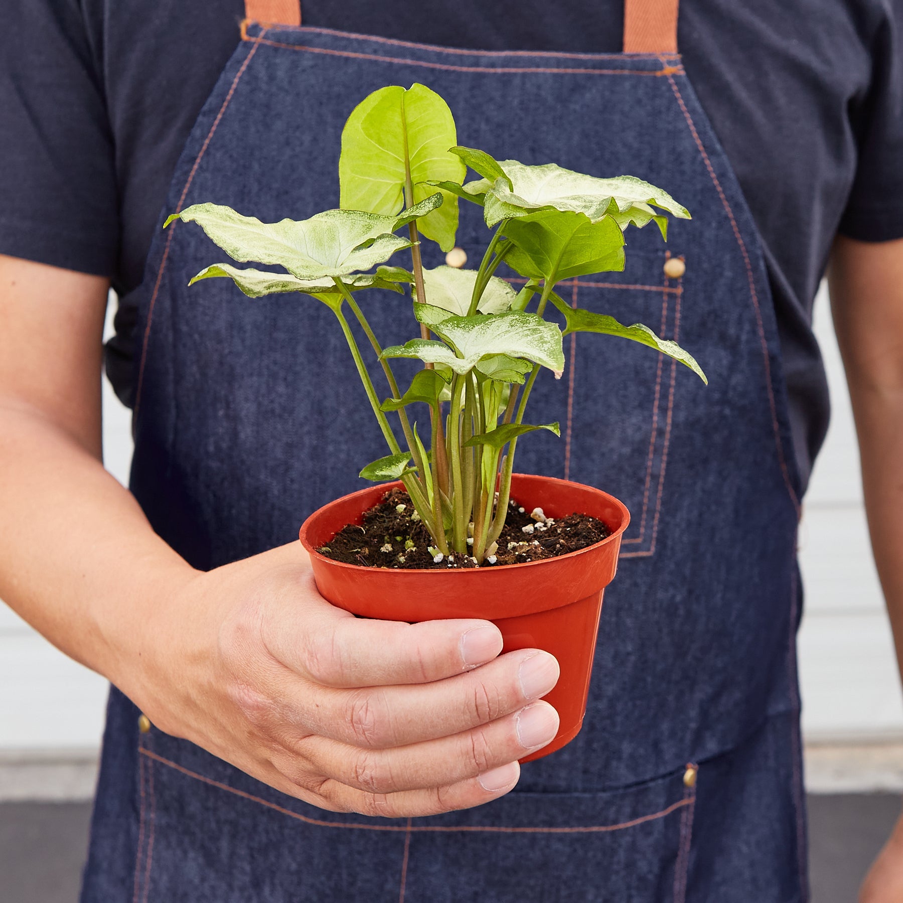 - Description: The leaves of the Syngonium 'White Butterfly' are arrowhead-shaped with white markings and dark green edges. As the plant matures, the leaves become more white and resemble a butterfly.